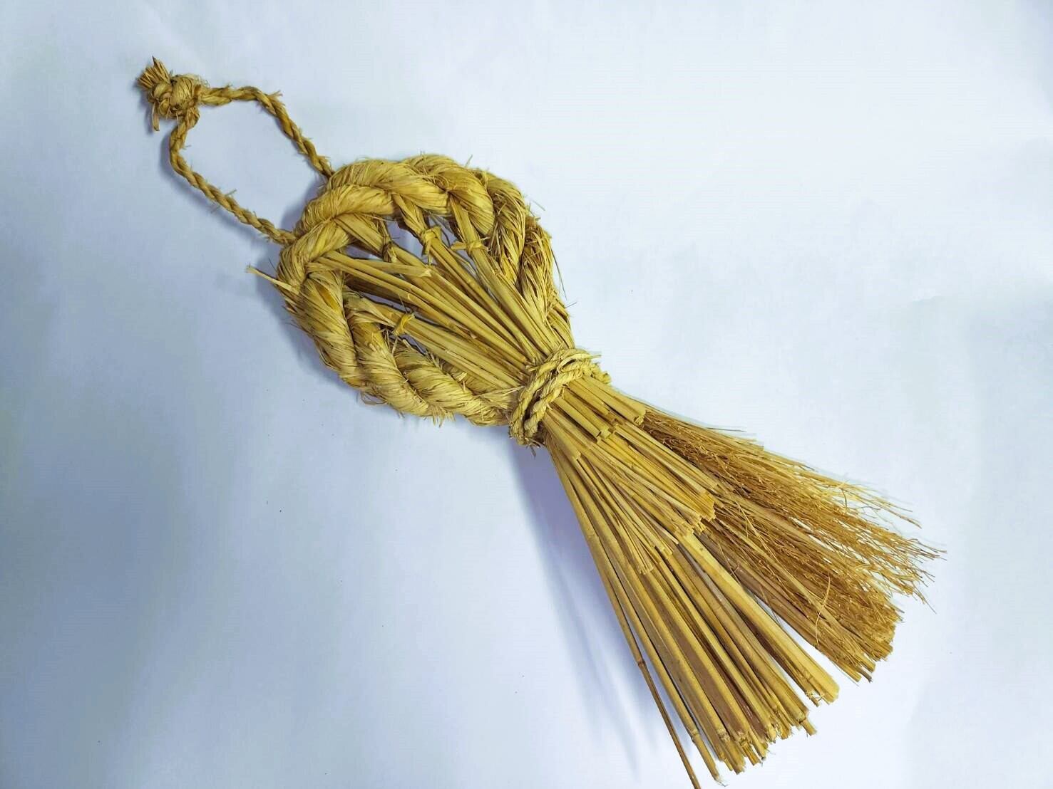 しめ飾りのモチーフには、縁起物が多く選ばれる中、この杓子のお飾りは暮らしの道具から着想を得ているところが、趣を異にしています。